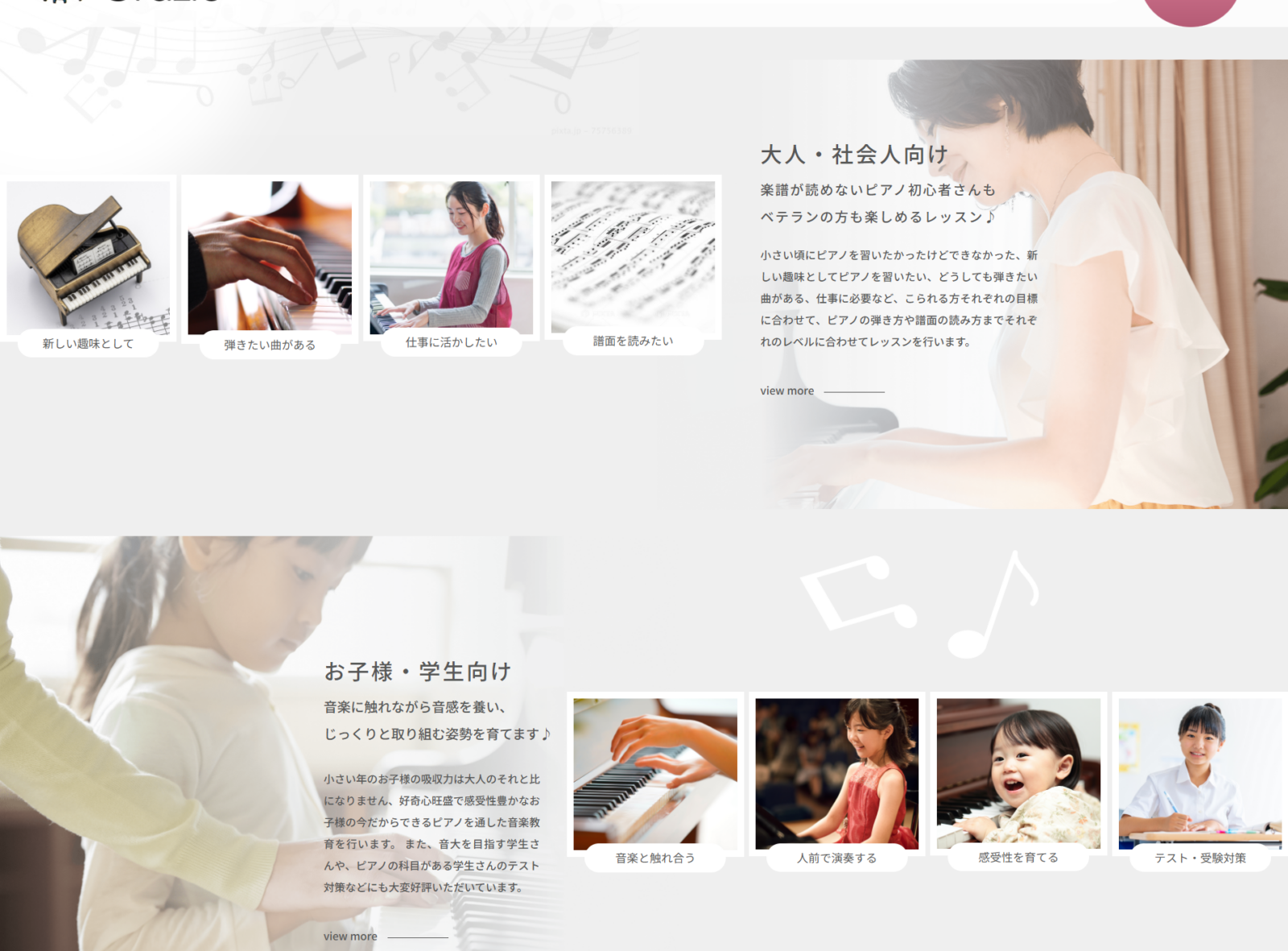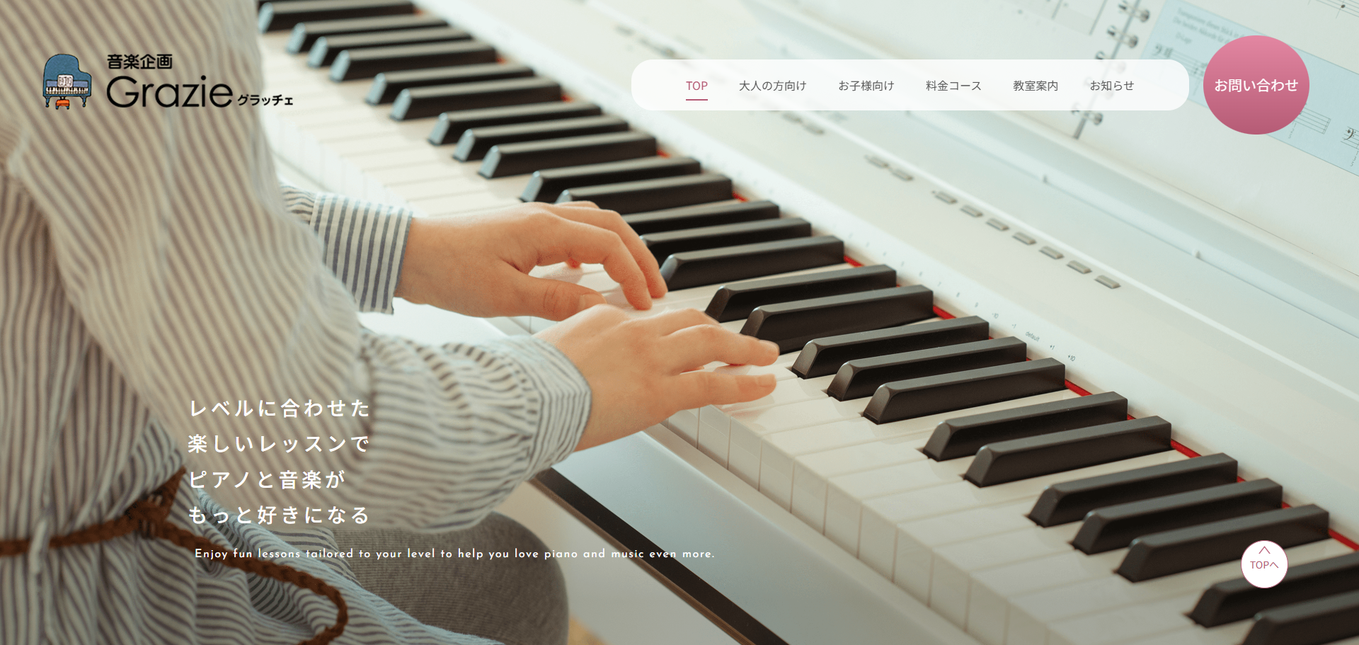 音楽教室 Grazie(愛知県東海市)は、初心者から経験者まで一人ひとりのレベルや目標に合わせた個別レッスンを提供し、「楽しく学ぶ」ことを大切にしています。小さなお子さま~大人・社会人・保育士志望者まで幅広く対応。教室は完全予約制・日曜休業で集中できる環境を整え、ワンコイン体験レッスンも実施。地域密着型の温かな教室運営で、多くの受講生に支持されています。