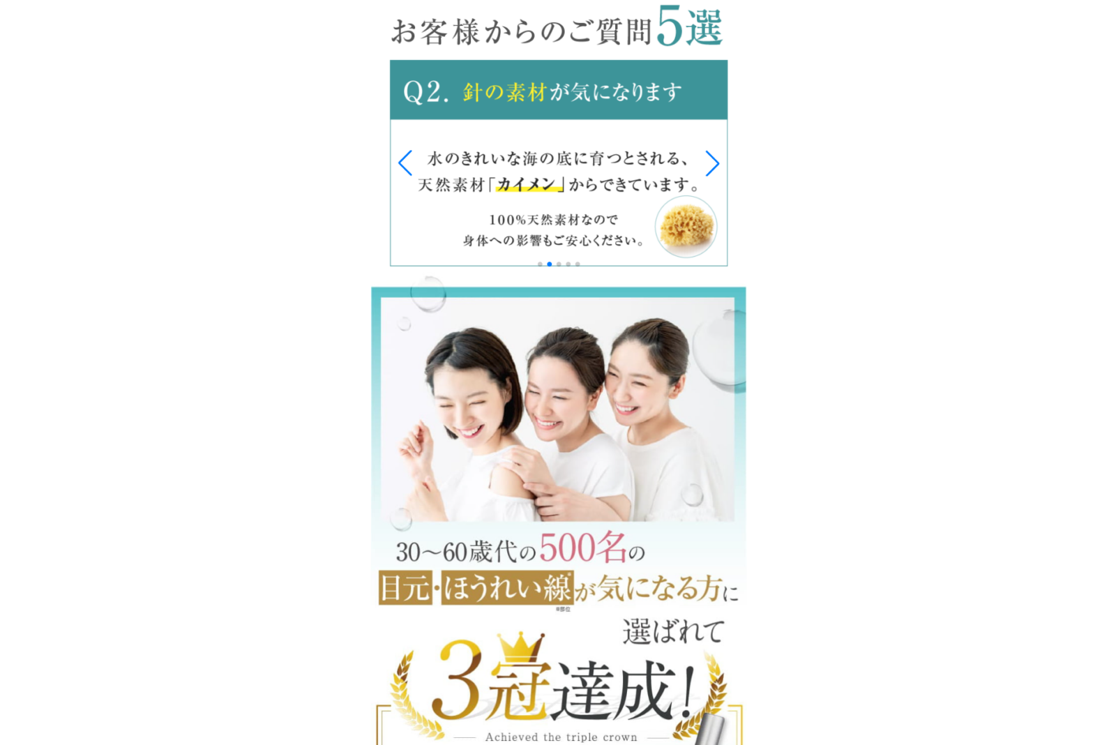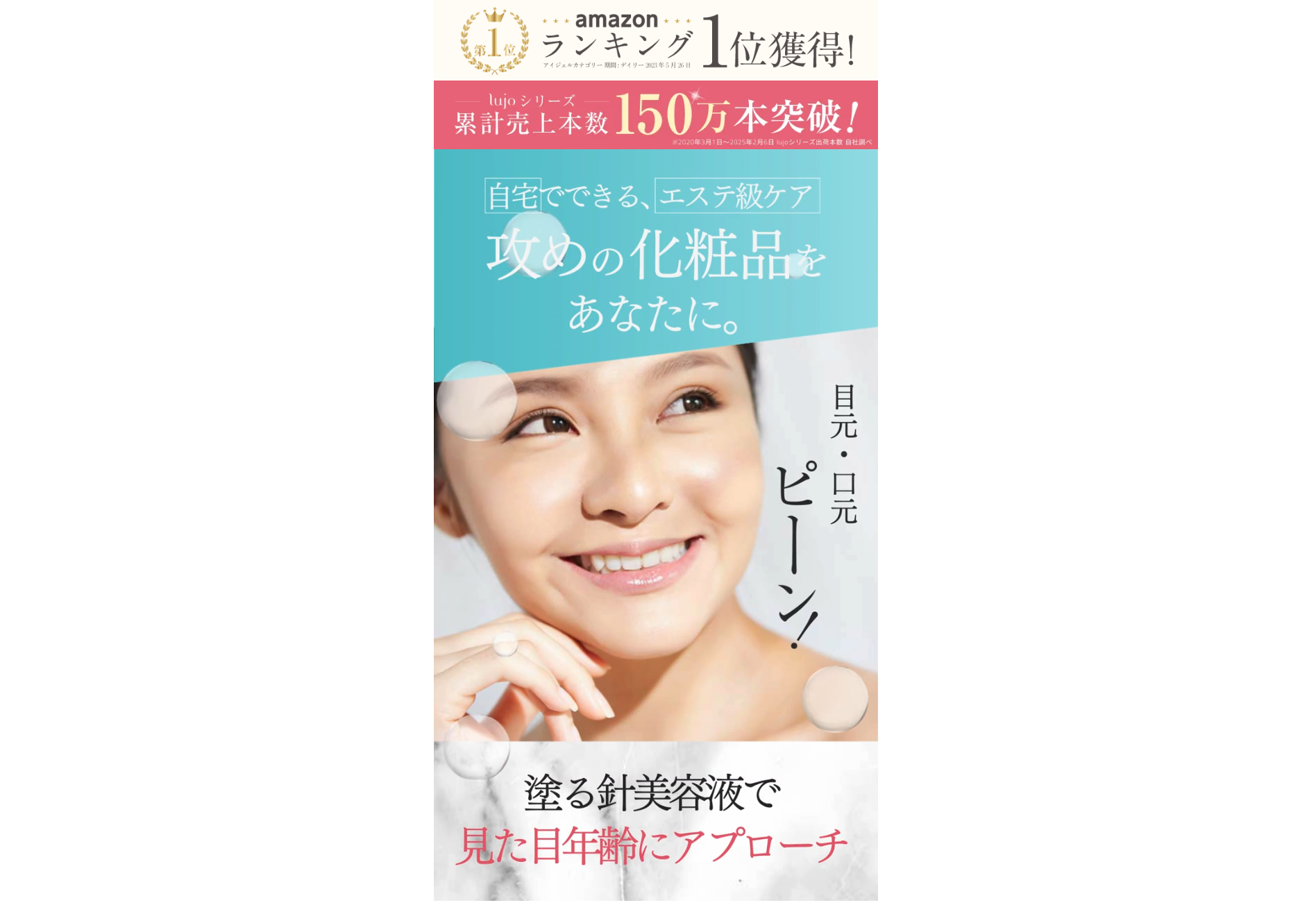 注目の lujoニードルセラム を提供しており、初回15日以内の返金保証に対応。クーポン制度や定期便を通じて継続利用を促し、使いやすさと購入ハードルの低さを両立しています。美容成分・針技術にこだわった処方で、目元・ほうれい線へのアプローチを訴求する実績を重ねています。