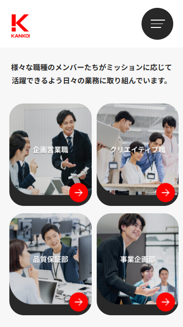 KANKOは、企画営業・クリエイティブ・品質保証など多様な職種で、「指示待ちではなく、自ら考え行動できる人材」を求めています。食品飲料から日用雑貨、車・金融まで幅広い業界の大手企業と直接取引し、マーケティング調査から提案・製造・納品・効果検証まで一貫して担当。未経験から専門スキルを身につけ、キャリアローテーションで成長できる環境があります。
