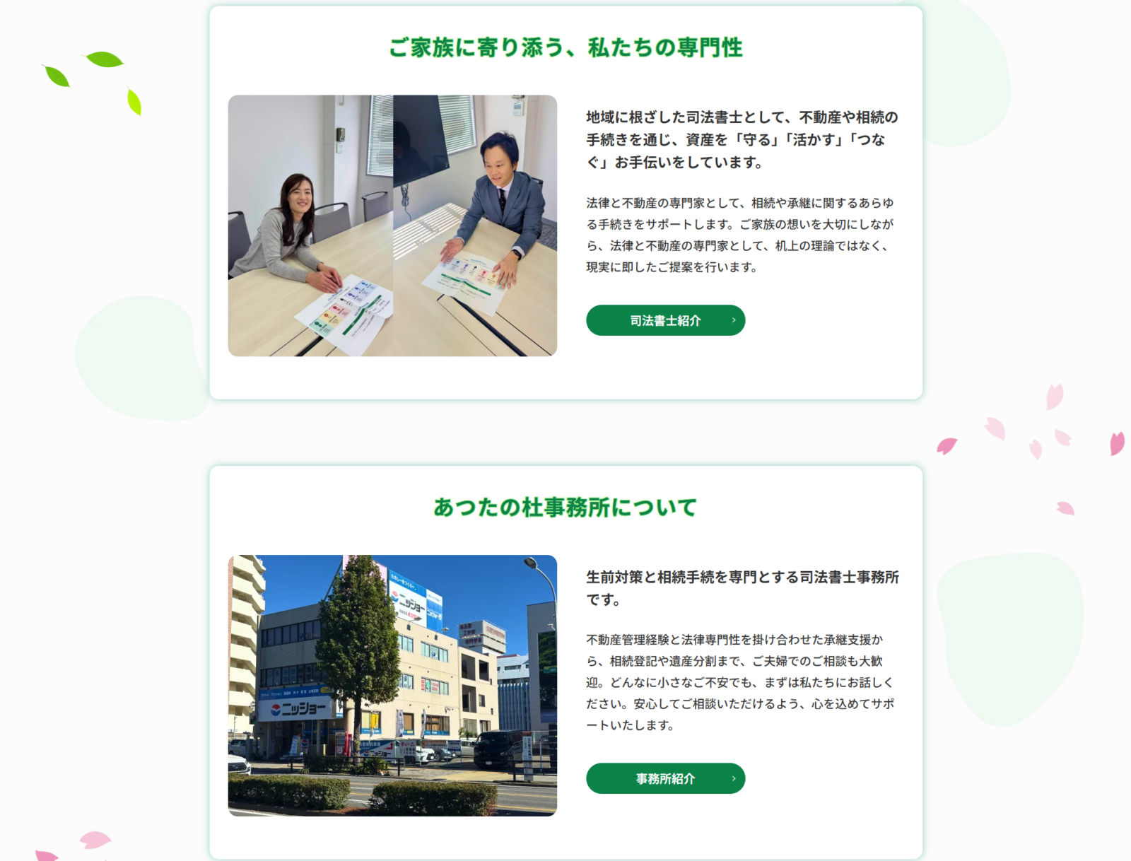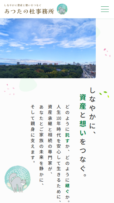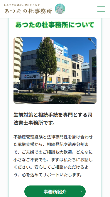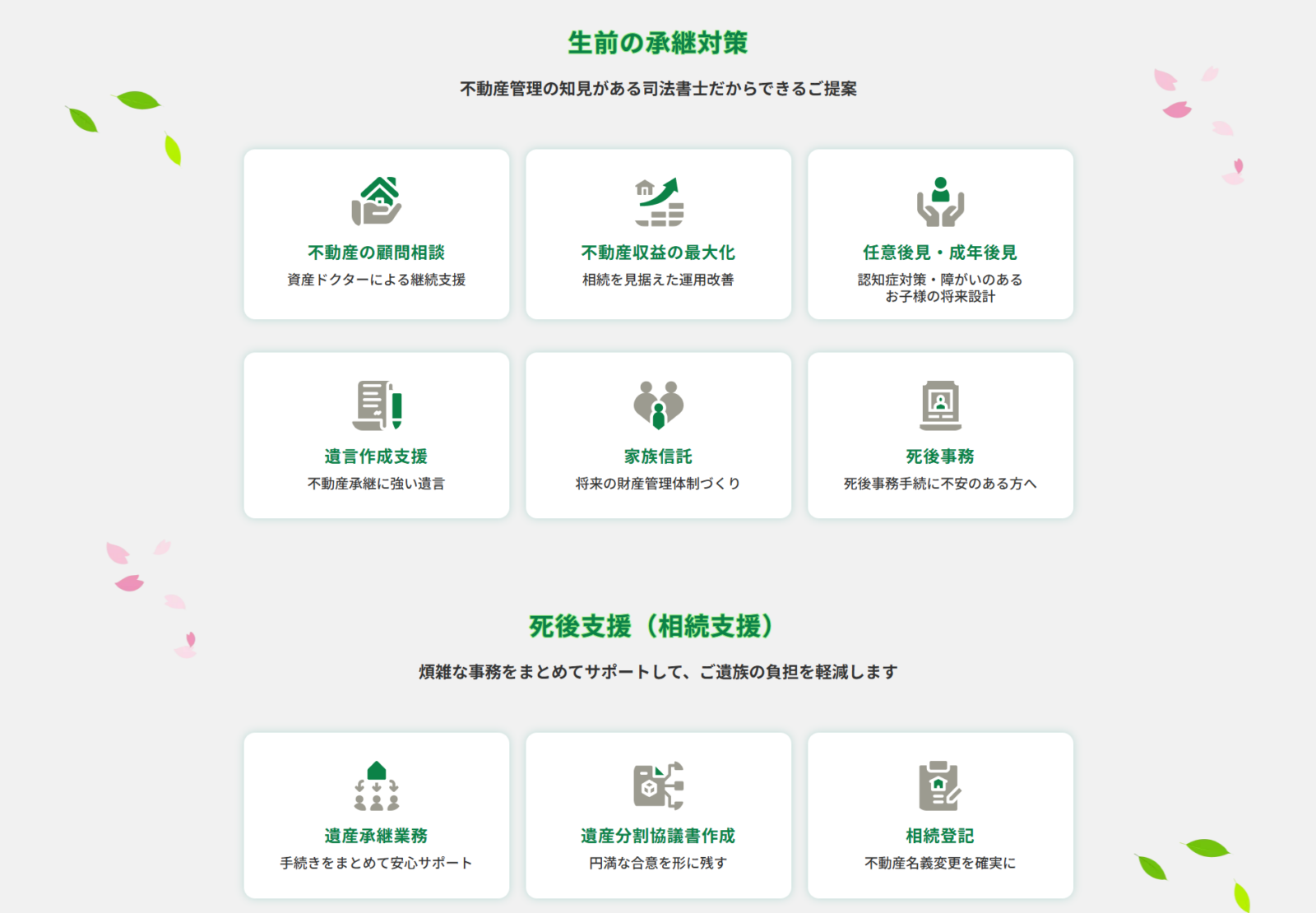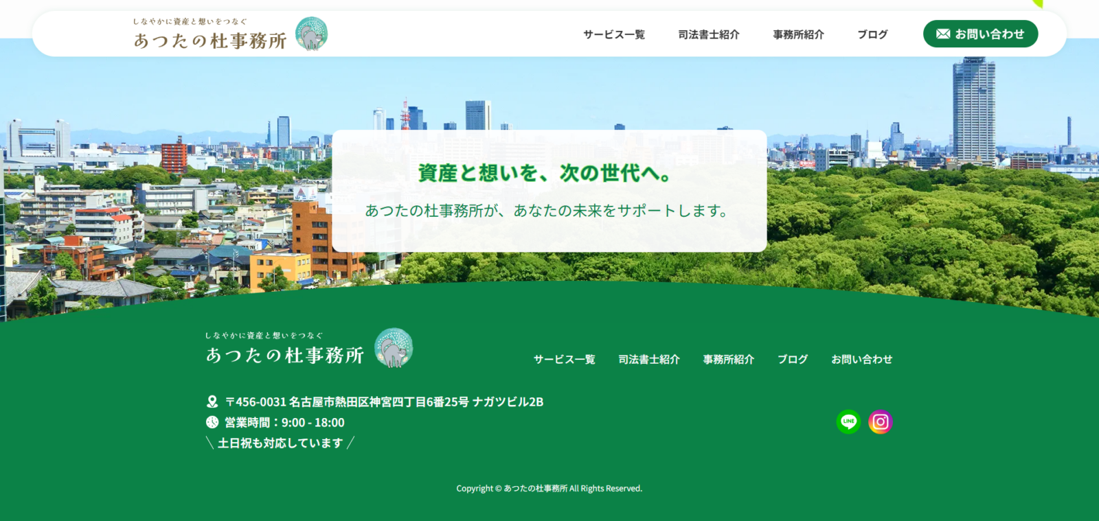 あつたの杜事務所は、名古屋市熱田区に拠点を構える司法書士事務所で、不動産や相続に関する「資産承継」サービスを専門に提供しています。相続登記・遺言作成・家族信託・任意後見・成年後見・死後事務など、司法書士ならではの法務知見と不動産運用のノウハウを融合させ、ご家族の未来を見据えた柔軟なプランを提案。地域に根ざしながら、想いと資産を次世代にしなやかに繋ぐサポートを実現しています。