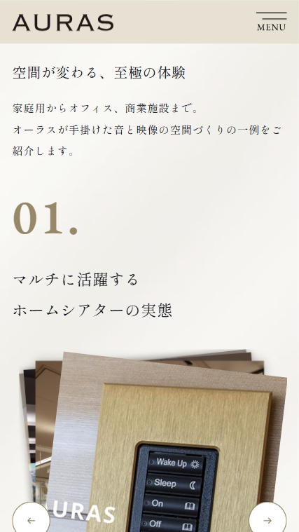 AURAS(オーラス)株式会社は、ホームシアター・高音質オーディオ・照明・ホームオートメーションの設計・施工を一貫して手掛けるラグジュアリー空間提案企業です。Bang & OlufsenやLINNなどの一流ブランド機器を活用し、住宅・オフィス・商業施設において五感を刺激する映像・音響・光の体験を創出。東京・大阪のショールームでは実際の体感が可能で、年間100件以上の施工実績を持っています。五感に響く上質な空間づくりを通じて、日常の暮らしを豊かにします。